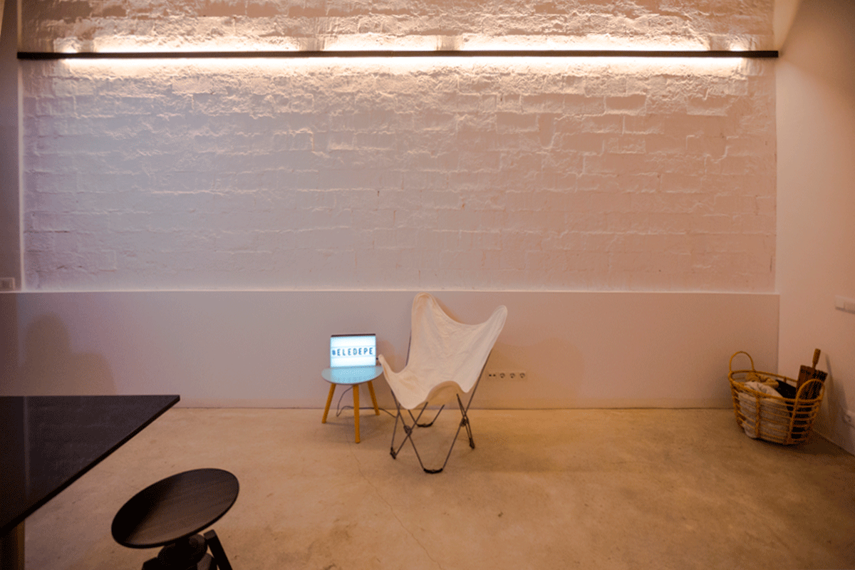 Y la zona de noche, habitación principal, al otro extremo de la vivienda, estas dos zonas se relacionan a través del distribuidor que da acceso al baño y a un estudio, ambos ligados con el patio de luces. Al eliminar los revestimientos aparecen elementos explicándonos la historia del edificio, materiales (cerámica) y sistemas constructivos (forjado de vigueta metálica y bóvedas de cerámica) que mantendremos a la vista a la vez que potenciaremos su textura con la iluminación, y combinándolos con los nuevos (pavimento de hormigón continuo) intentamos identificar la vivienda con el barrio donde se sitúa, versátil, industrial, humilde y obrero.